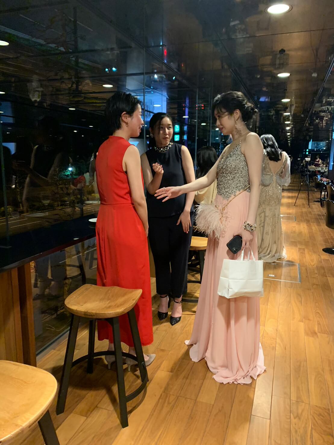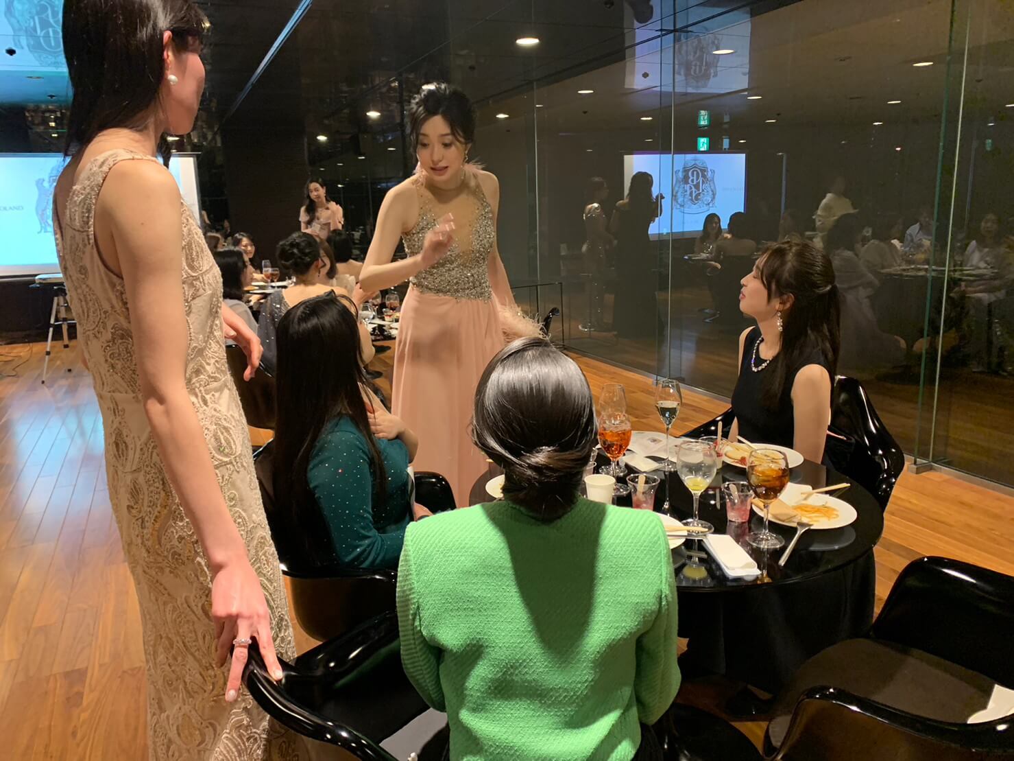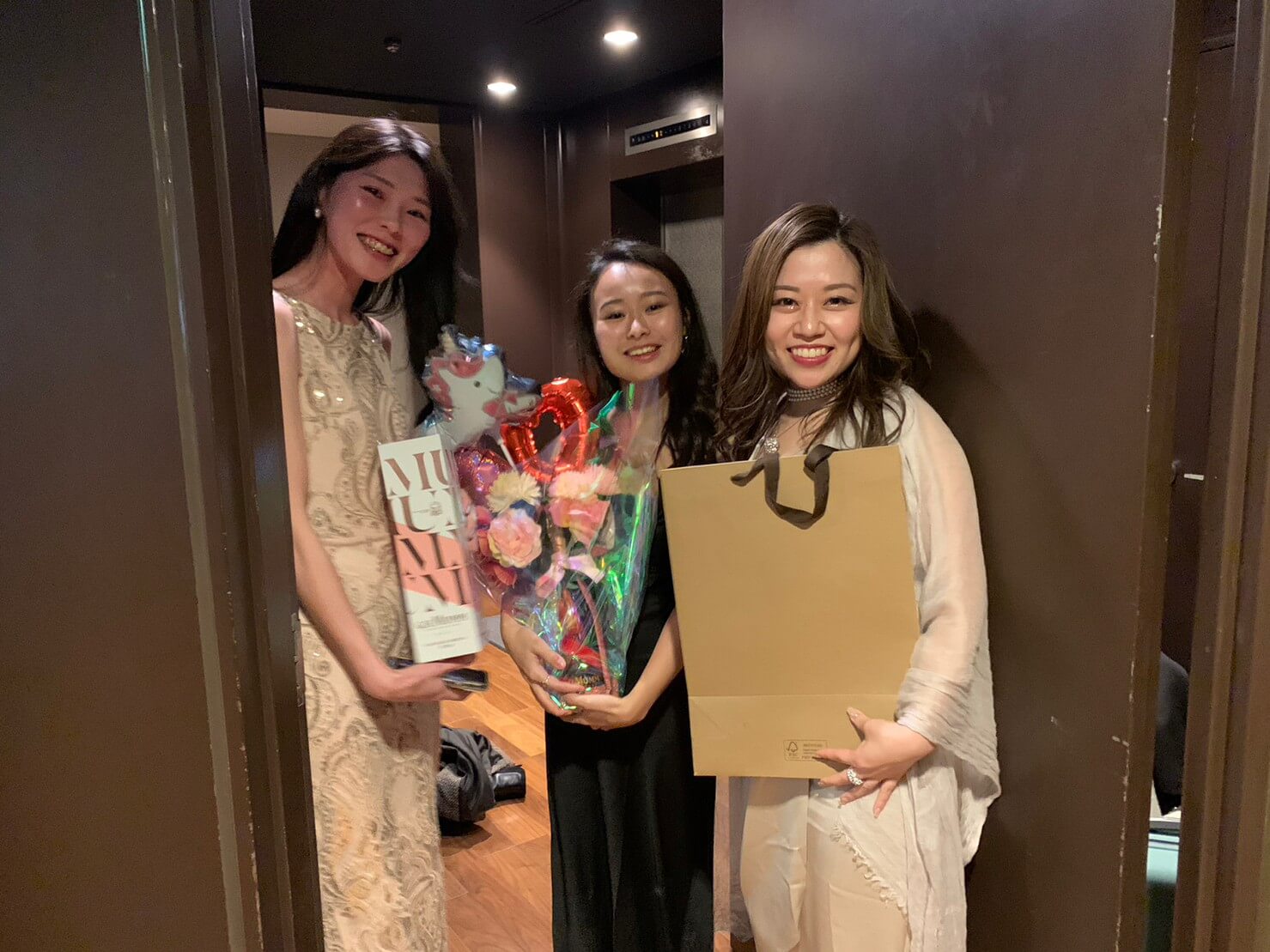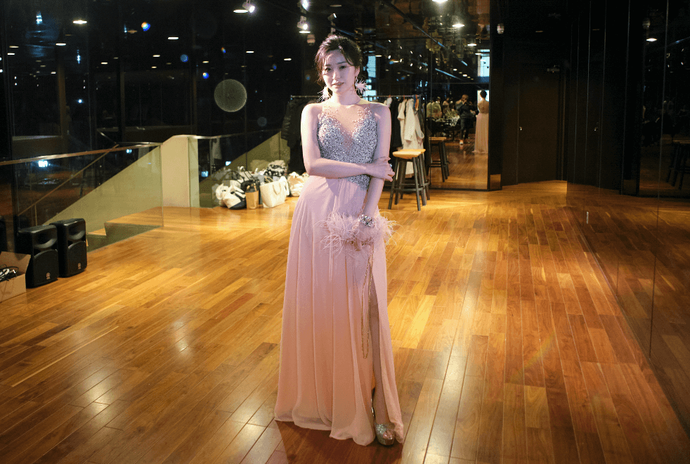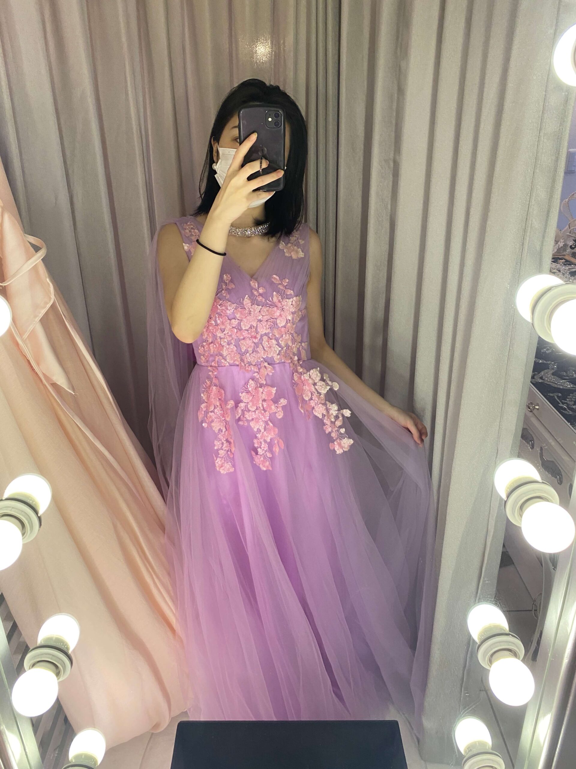 私も今回は、みんなに合わせて、きちんとした豪華なロングドレスを着ました😍!!!